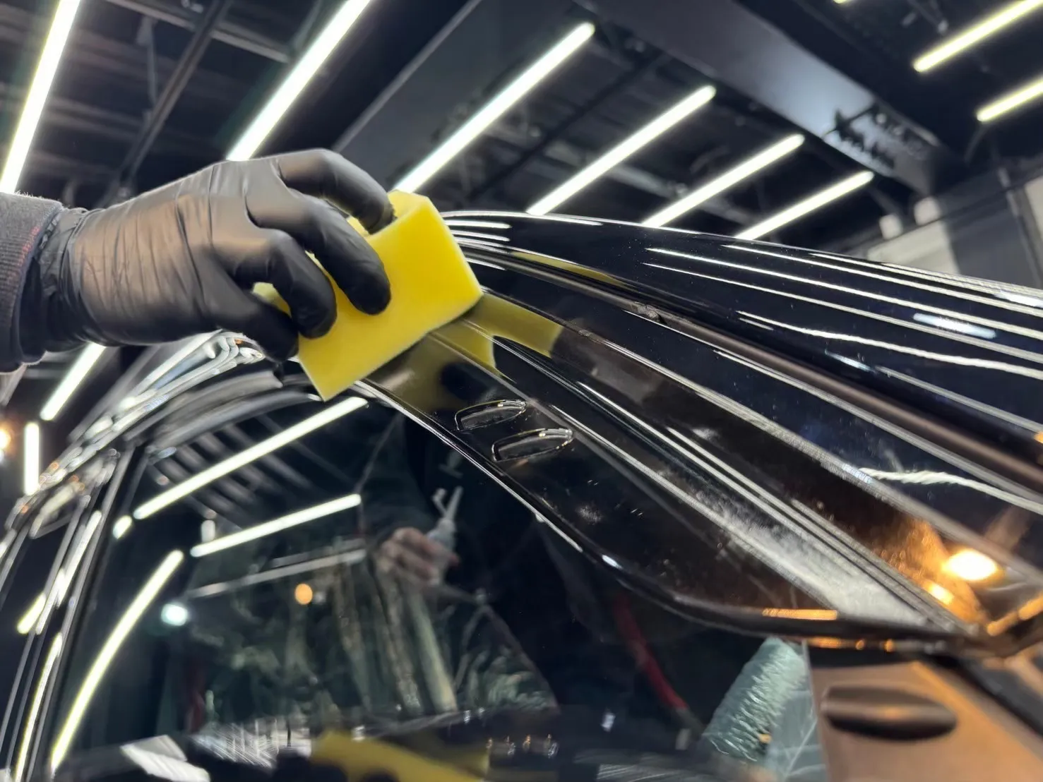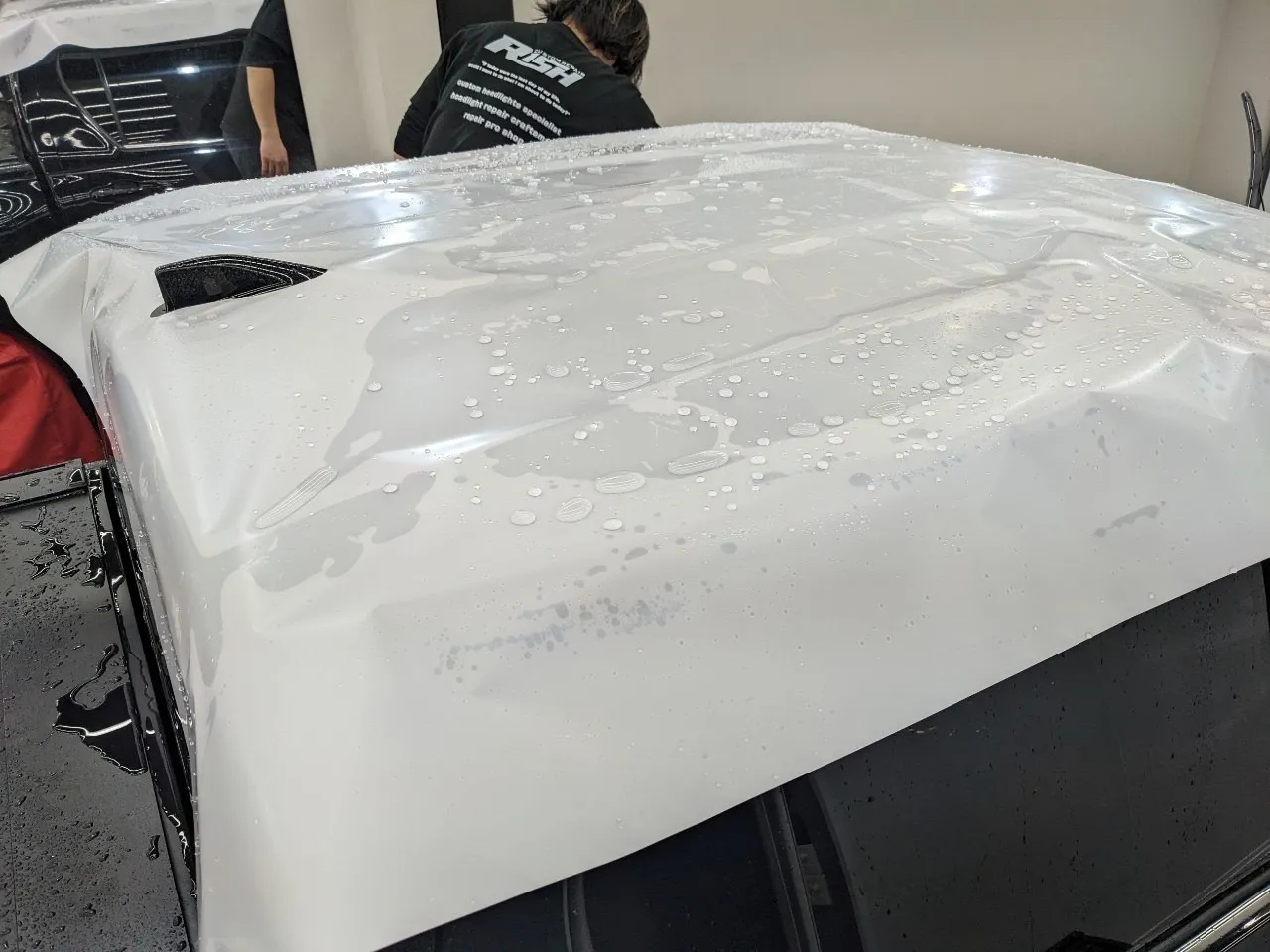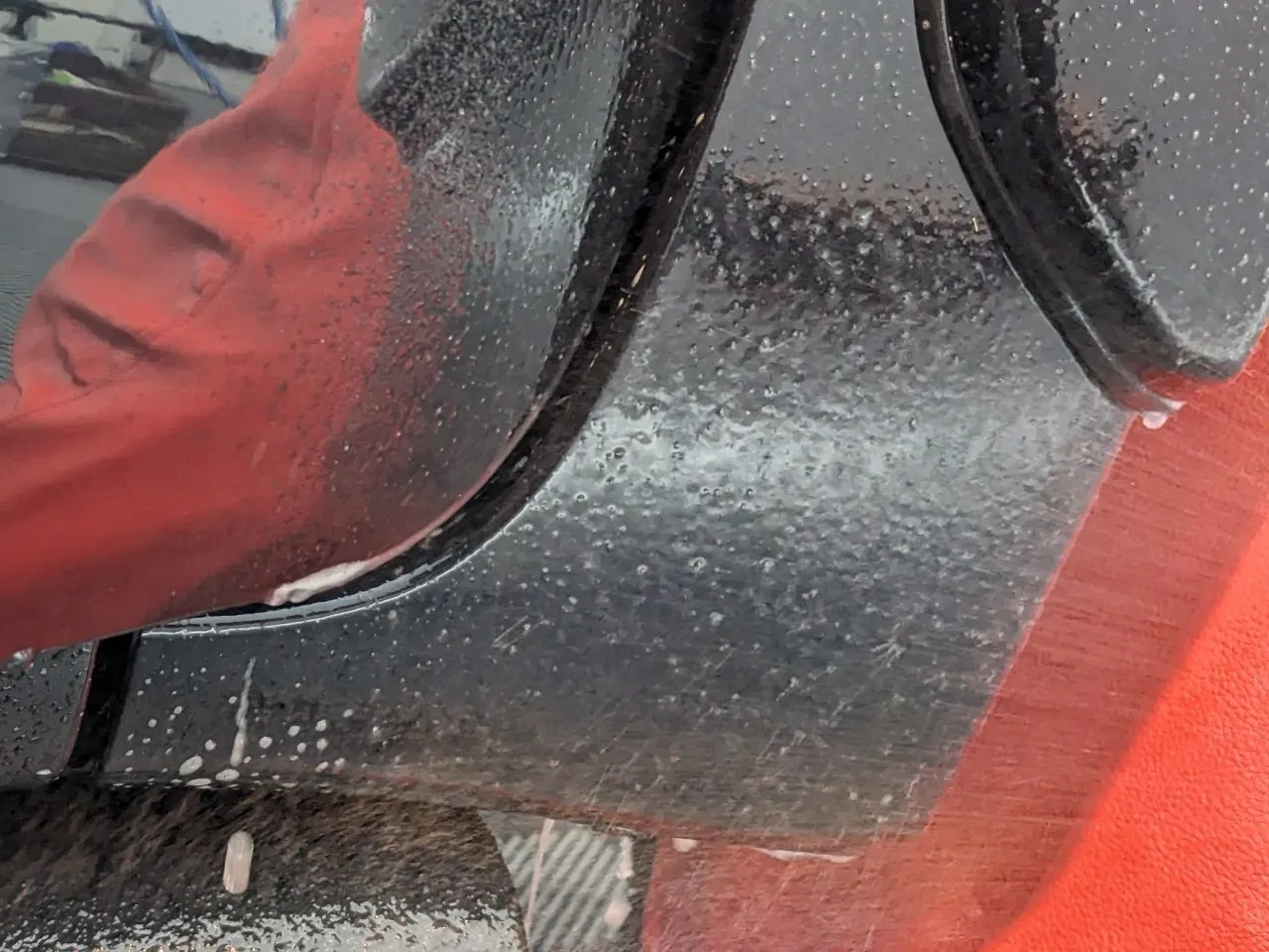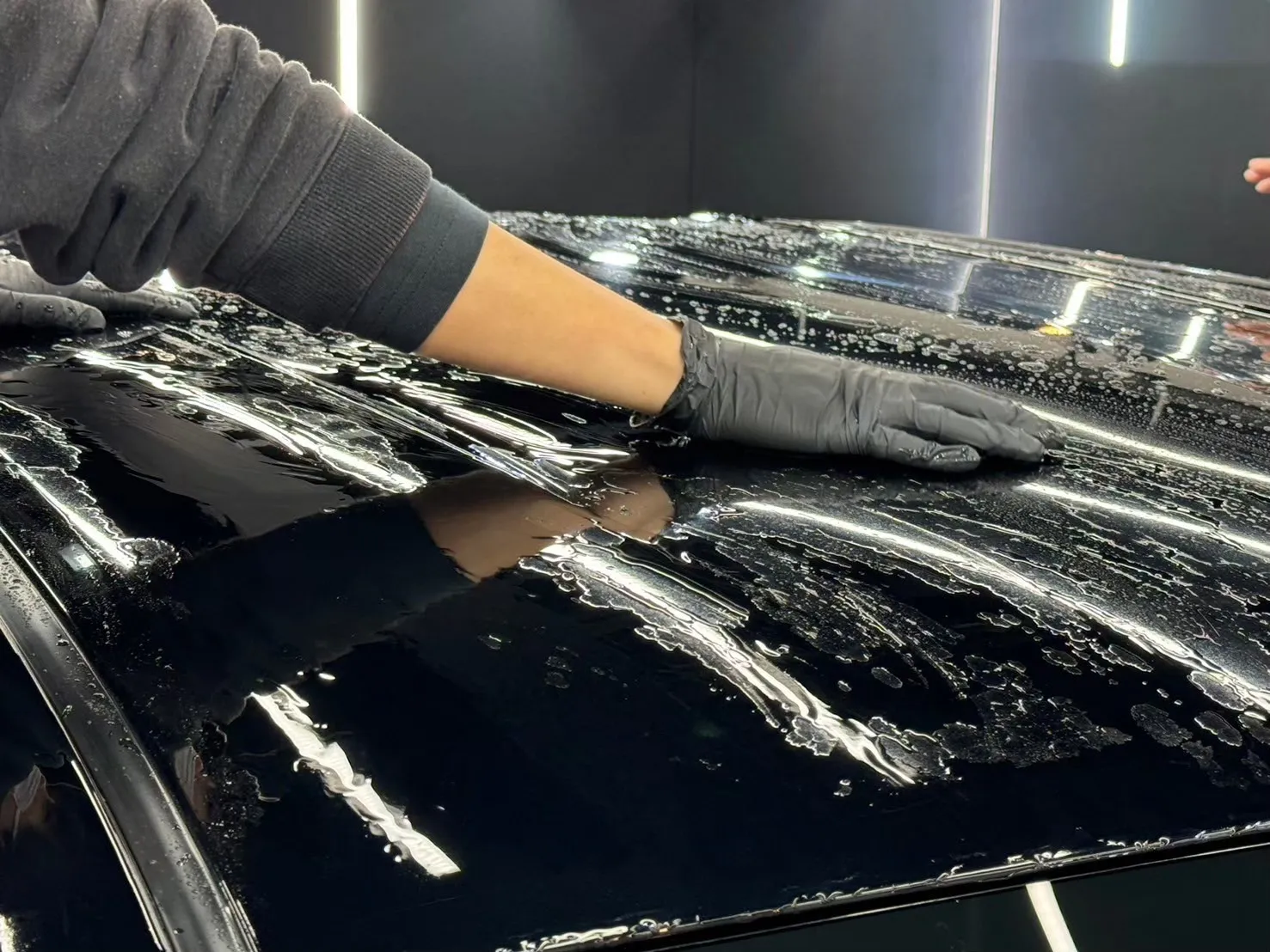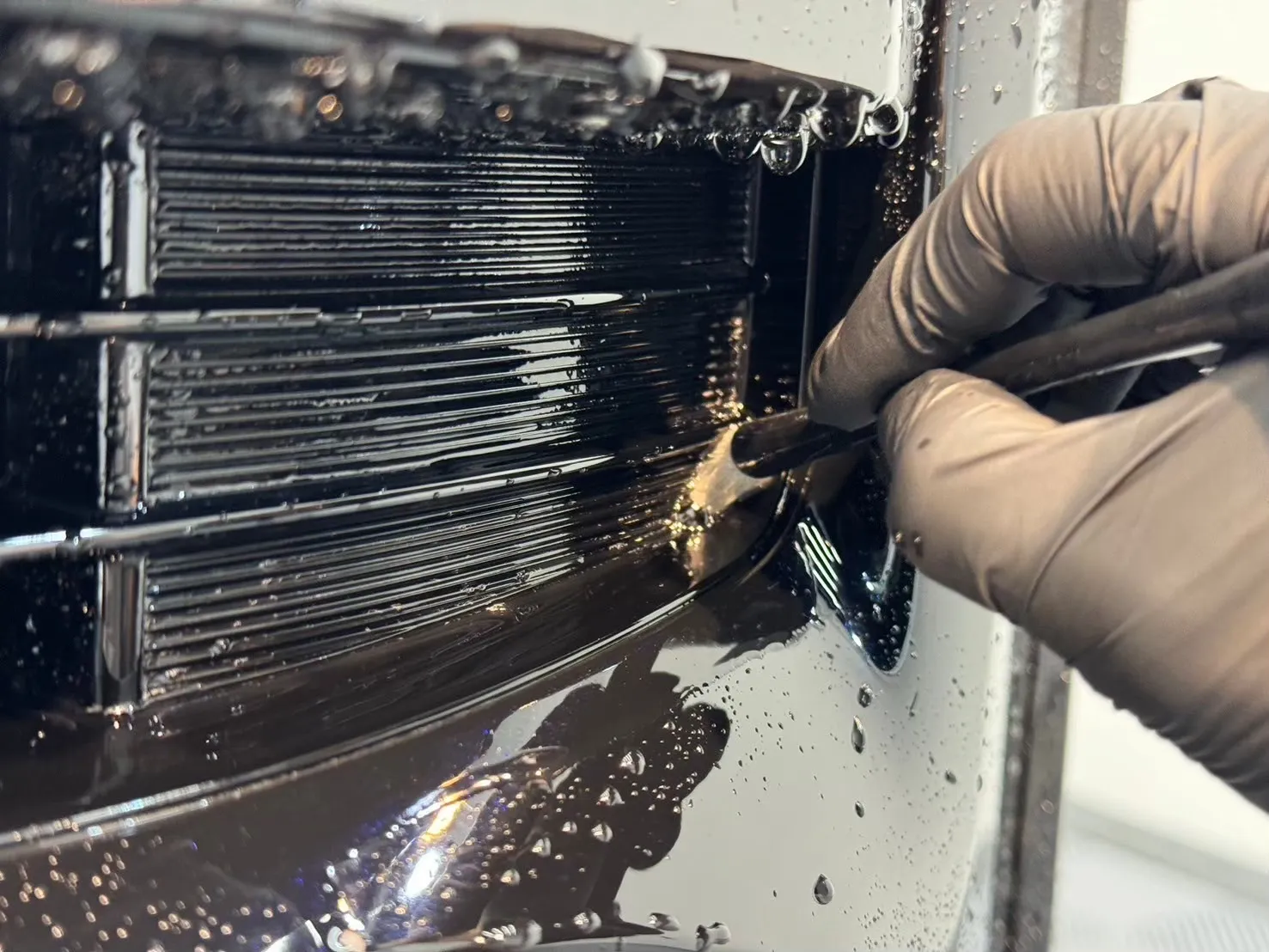 青空駐車の黒いお車は特にイオンデポジットが発生しやすいのですが、親水性のコーティングを施工することでイオンデポジットの発生を抑制できます。
