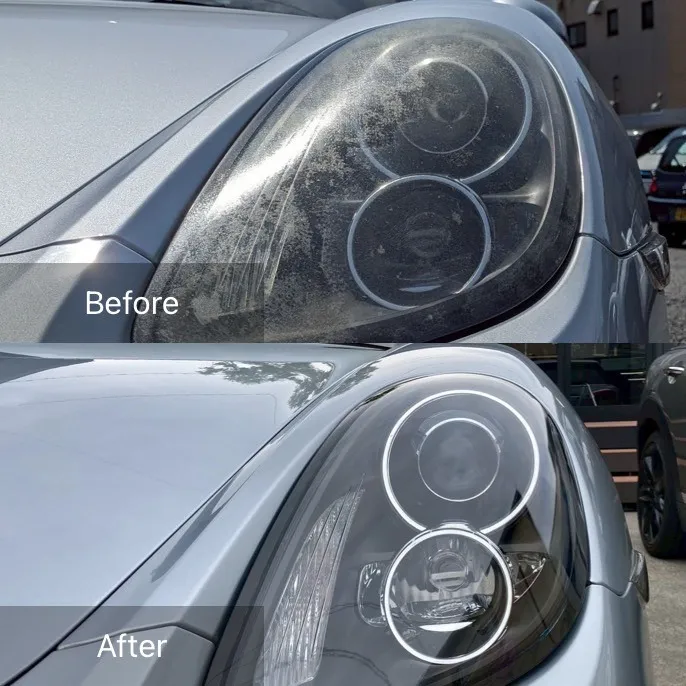 ヘッドライト研磨ダブル施工 (重研磨+スチーム加工+PPF)
