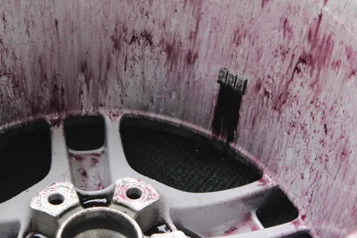 ある程度の鉄粉は先の反応型リムーバーで除去できますが、完全ではないのでネンダー処理でアルミホイール裏側の鉄粉を丁寧に一粒づつ処理。