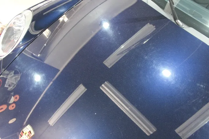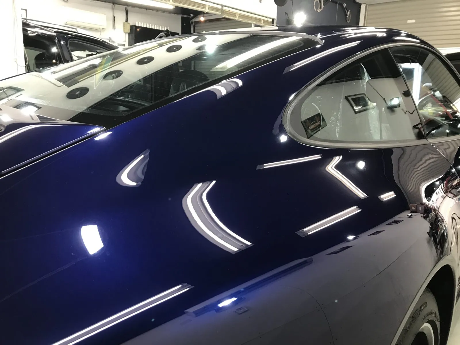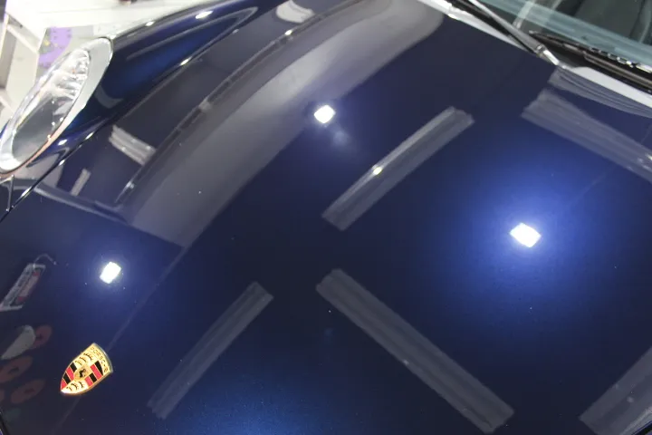 ポルシェの中でも比較的入庫の多い911は、全てのパネルが曲面で形成されておりますので均一な磨きを掛けるのにテクニックが必要なモデル。
