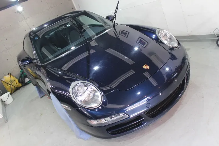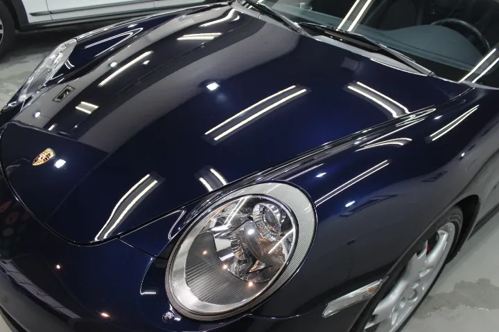 シャンプー、脱脂、ブロアー乾燥を経てポルシェ911へ硬化型樹脂コーティング「マイクロフェンス」施工完了。