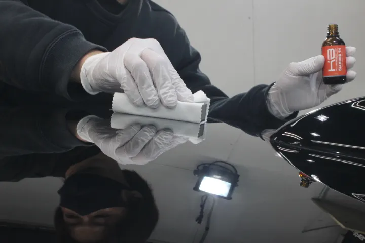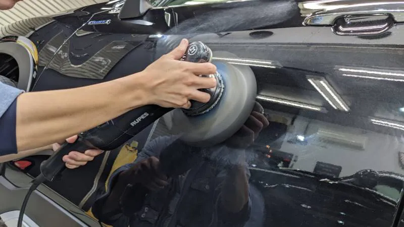脱脂/洗浄後のコンディションニング、ナノプライマーをポリッシャーで塗布しセラミックコートの下地(塗装)を最適化します。