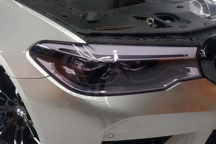 アウディA7への、ヘッドライトカラープロテクション施工のご依頼です。「STEK DYNO shade(エステックダイノシェード)」、ライトスモークタイプのプロテクションフィルムを使用します。