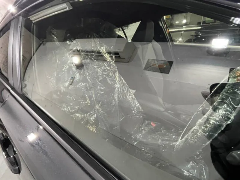 ウインドー撥水加工前の、酸化セリウムでの下処理では、窓ガラスに付着した油分や不純物、シリケート層をリセットします。