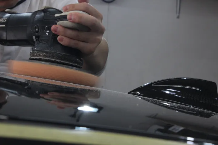 超微粒子のライトポリッシュでBMW420dの酸化したルーフのコーティング被膜をリセット。