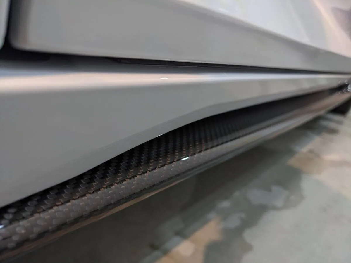 チッピングリスクの大きいサイドエアロのカーボンパーツにもプロテクションフィルムを。