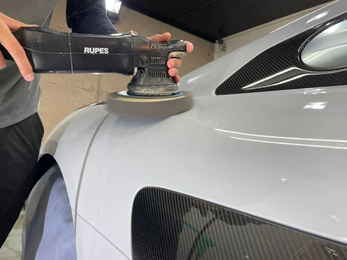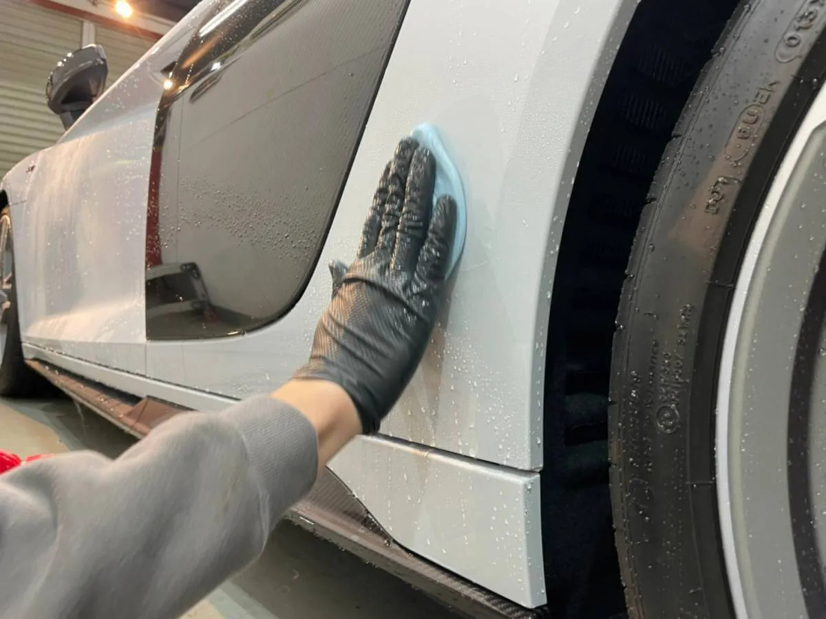 新車の磨きレベル1にて、ボディ全体をポリッシング。プロテクションフィルム施工パネルはもちろんのこと、セラミックコーティング “XPEL FUSION” 施工部分の塗装コンディションを最適化します。