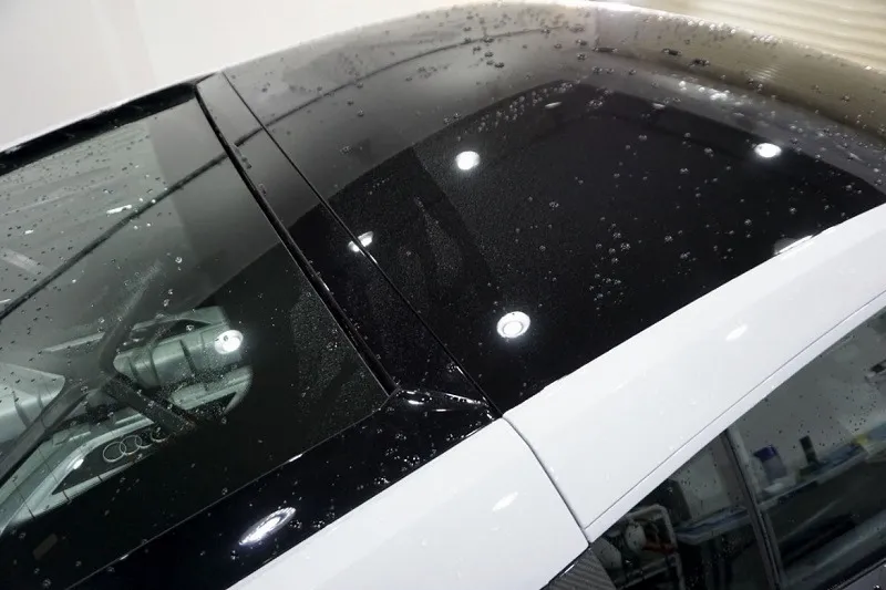 ラッピングフィルムよりも肌が美しく、塗装保護を目的とし劣化した際には剝り変えることを前提としたプロテクションフィルムですので剥がす時の糊残りがなく塗装を傷めることもありません。ガラスルーフのような平滑な見た目の仕上がりに。